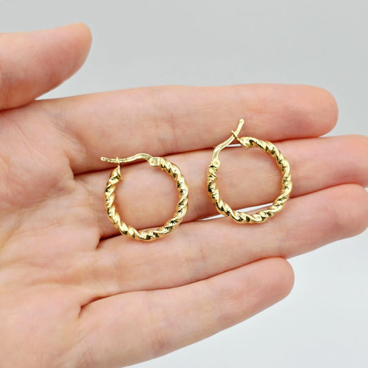 These elegant 18K Solid Gold Hoop Earrings feature a beautifully twisted rope design that catches the light with every movement. Crafted in genuine 18K yellow gold, they combine lightweight comfort with timeless sophistication. Perfect for everyday wear or dressing up for special occasions, these hoops make a versatile addition to...