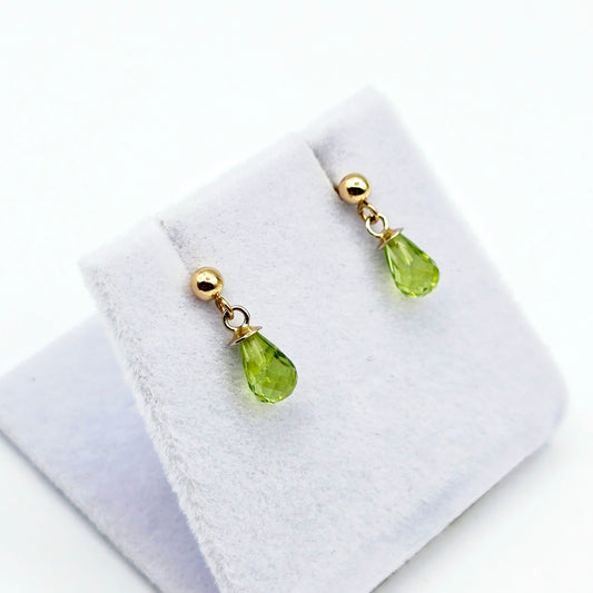Add a refreshing pop of colour to your jewellery collection with these elegant 14K yellow gold peridot earrings. Featuring natural light green peridot gemstones in a stunning briolette cut, each stone is delicately suspended from classic gold ball studs, creating a graceful dangle effect. 14K Yellow Gold Stud Drop EarringsGenuine...