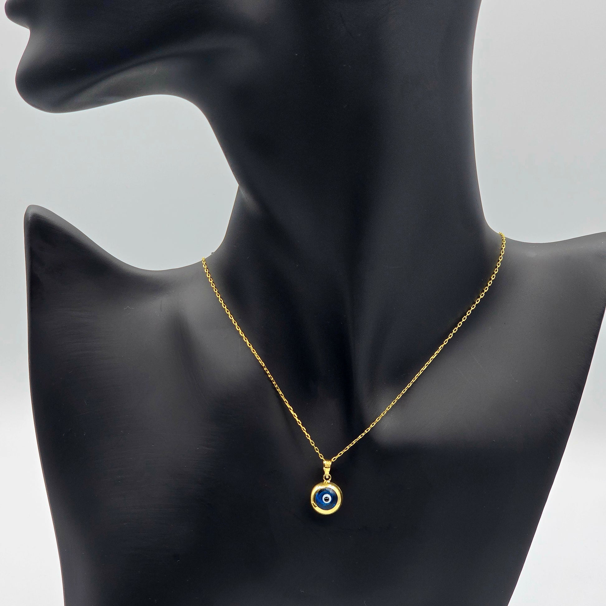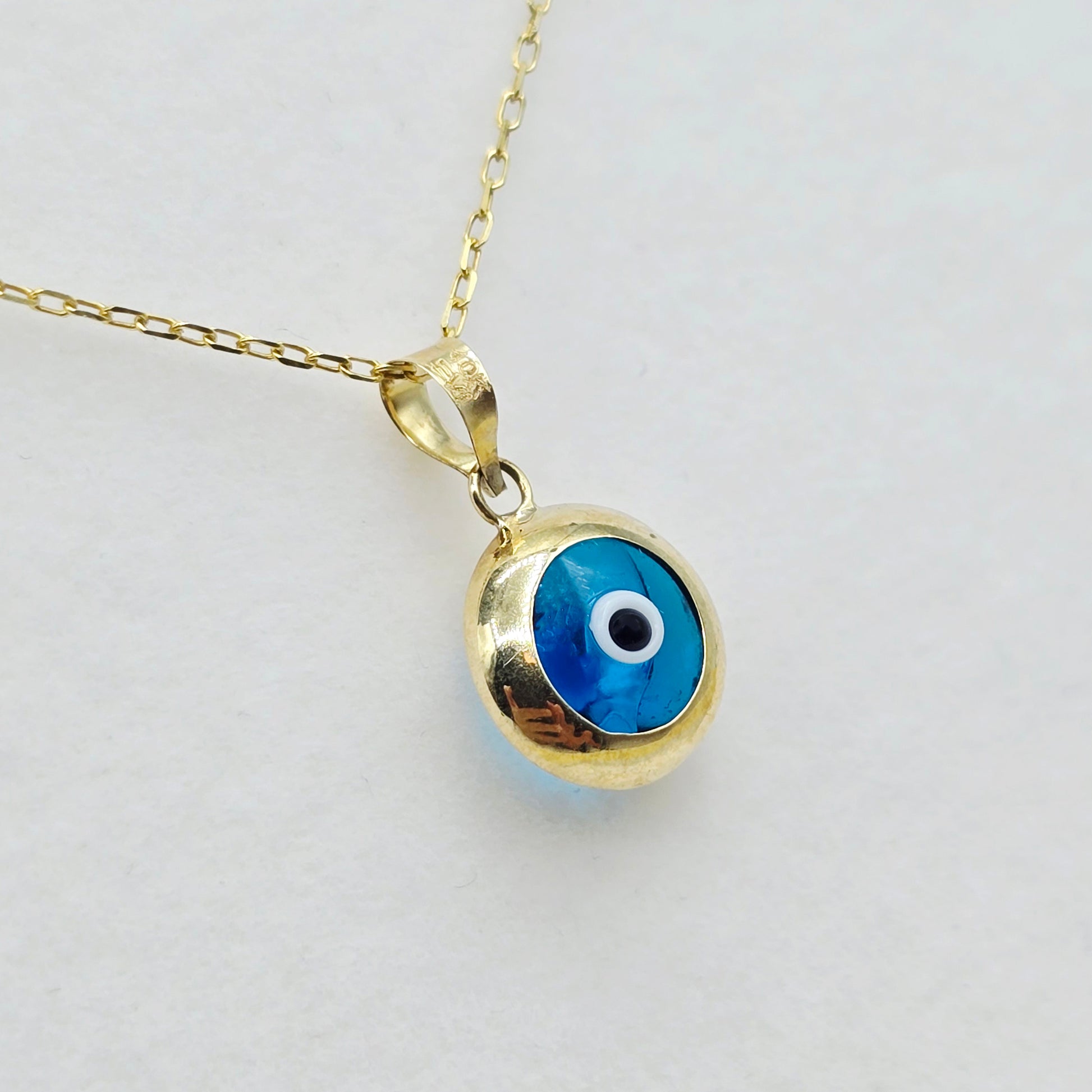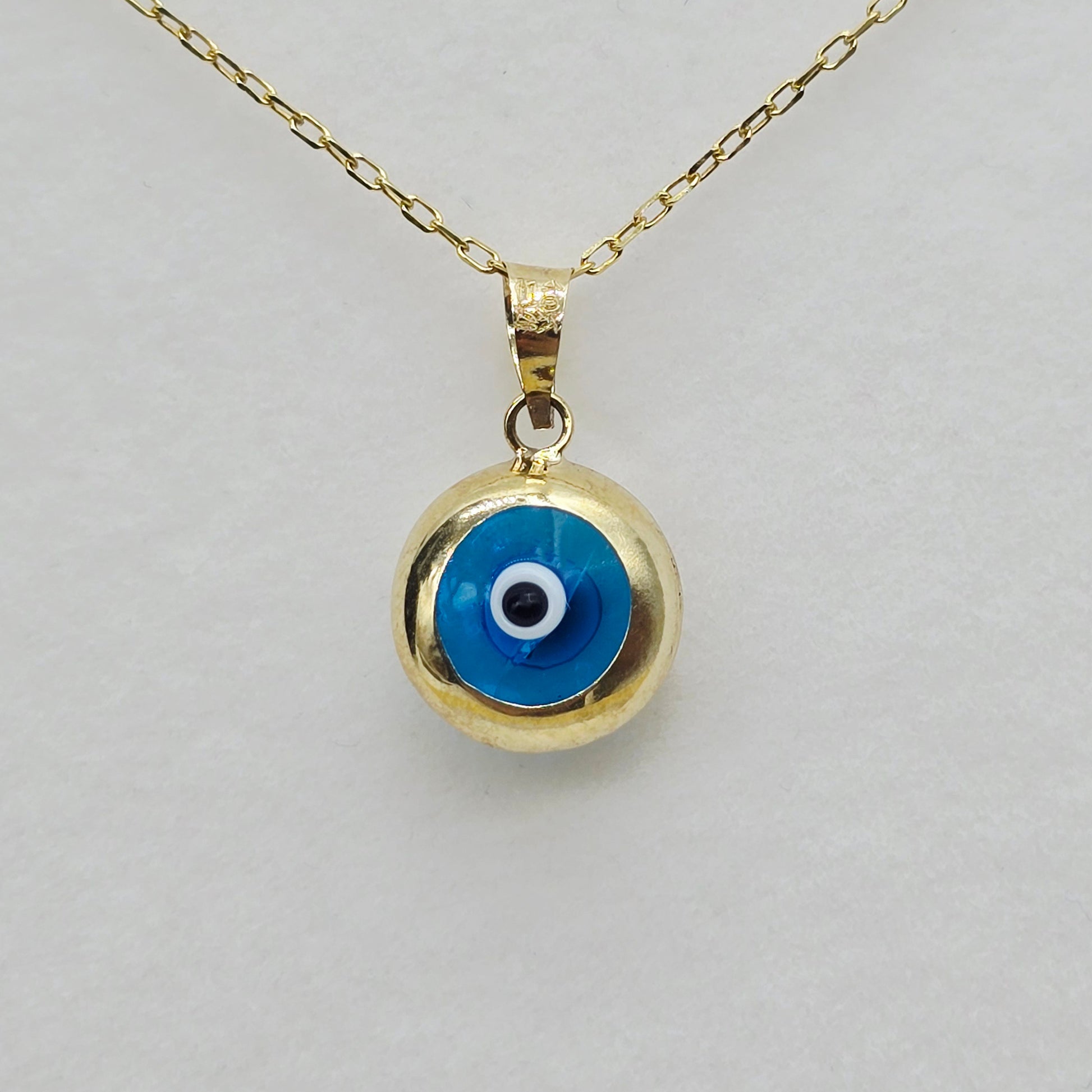 This stunning 10K solid gold Evil Eye pendant is a meaningful symbol of protection, style, and good fortune. Featuring a vibrant blue glass eye framed in genuine 10K yellow gold, it blends traditional symbolism with modern elegance.