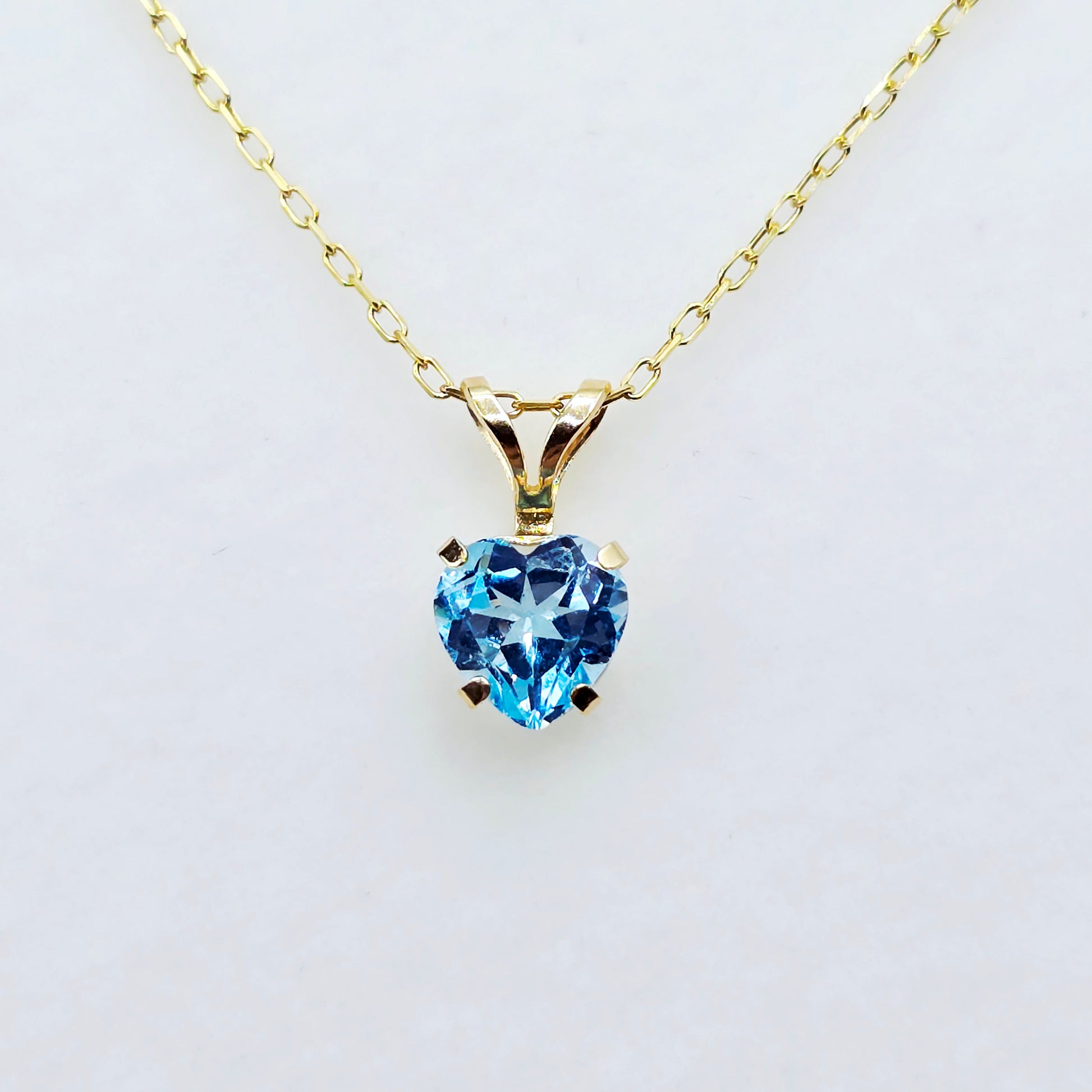 Add a touch of romance and brilliance to your look with this Blue Topaz Heart Pendant. Featuring a dazzling 6mm heart-cut genuine blue topaz, this pendant sparkles with a vibrant sky-blue hue that catches the light beautifully from every angle.
