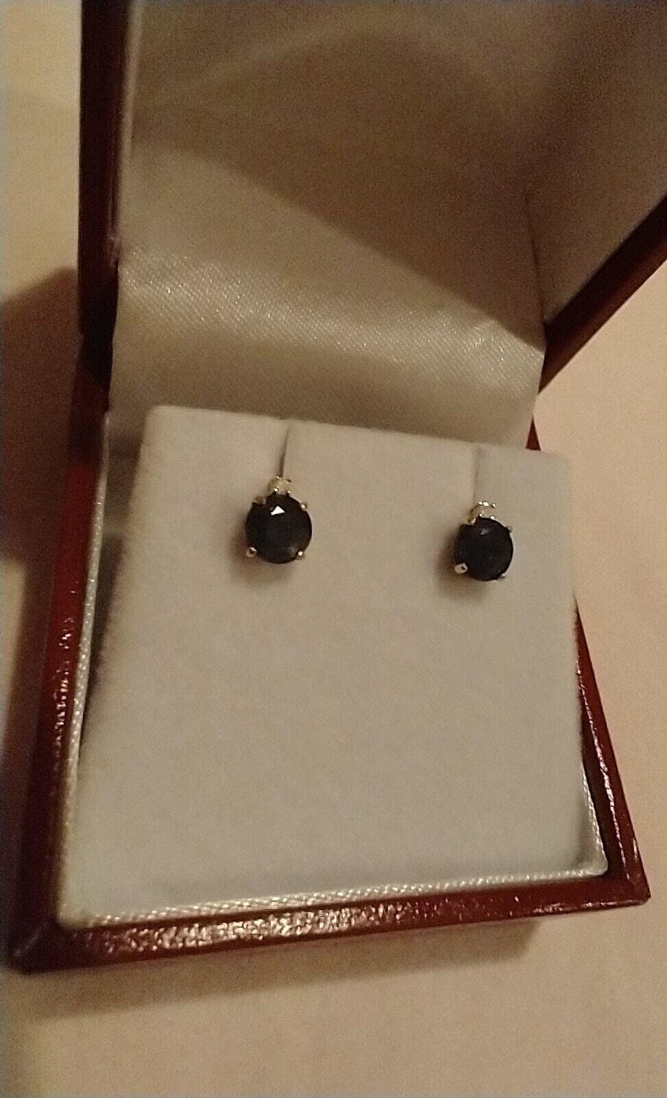 10K Yellow Gold Earrings Genuine Blue Sapphire 1.2ct With Diamond 0.02ct Size of earrings: Length: 0.26", Width: 0.19" Size of stone: 5x5mm Handcrafted with care in Canada Comes with 10K gold silicon clutches for cushioned comfort and loss prevention