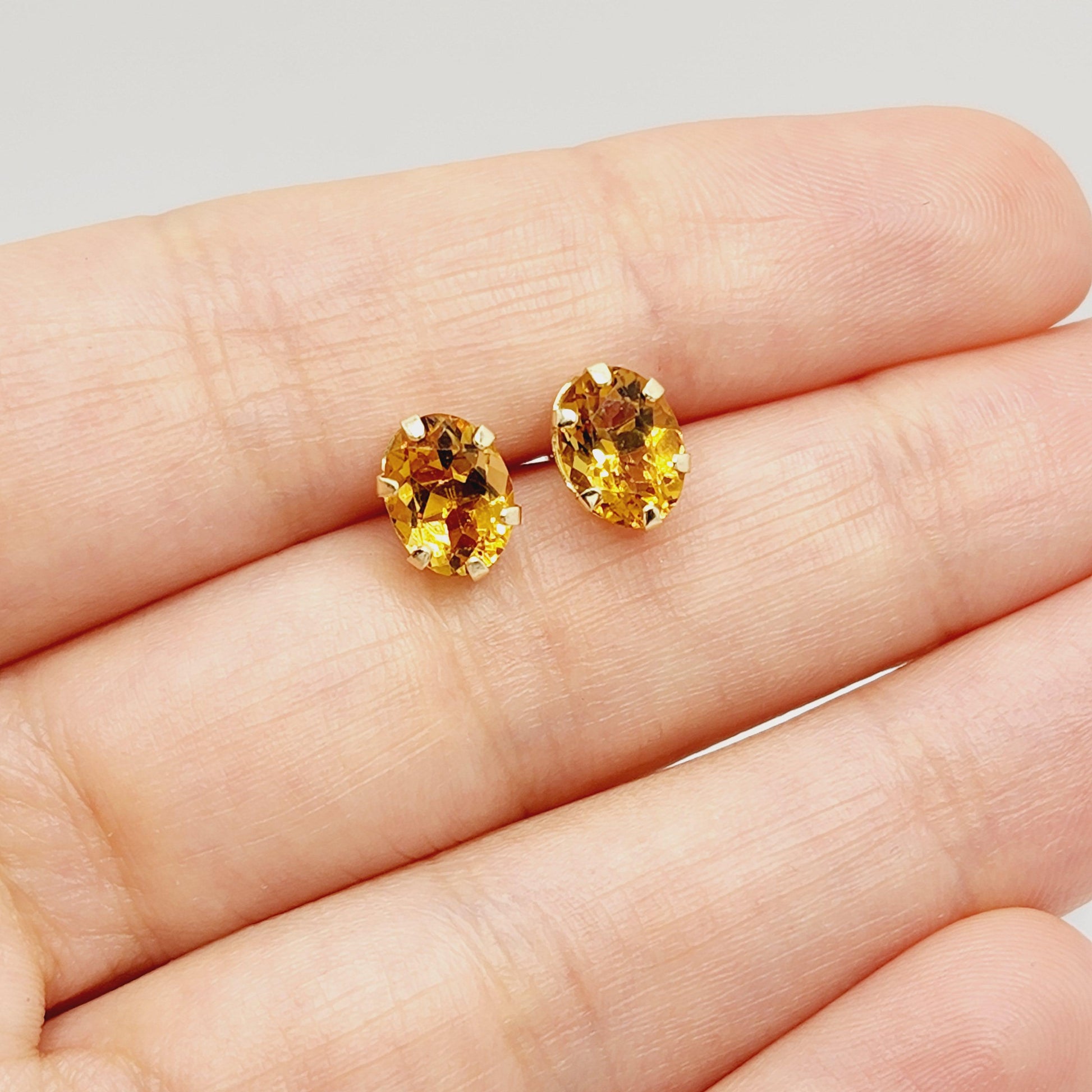 10K Yellow Gold Citrine Stud Earrings, November Birthstone 8x6mm, Birthday Gift for Women