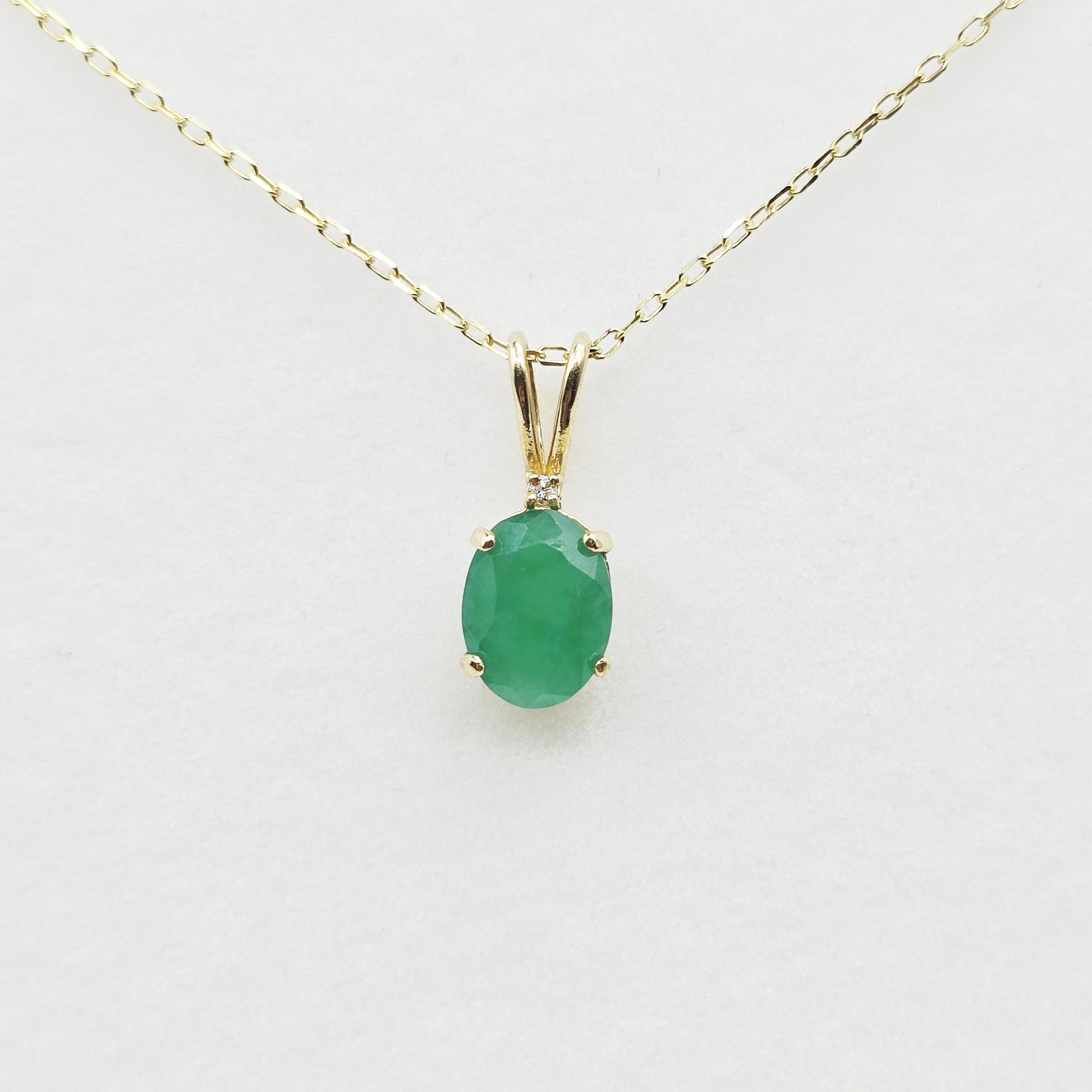 Adorn yourself with elegance through our Gold Emerald Pendant Necklace. Meticulously crafted in 10K yellow gold, it features a natural 8x6mm natural emerald gemstone, accentuated by a sparkling diamond. Symbolizing renewal and prosperity, this necklace is the perfect May birthstone gift for women. Elevate your style with the timeless beauty of this exquisite pendant necklace.