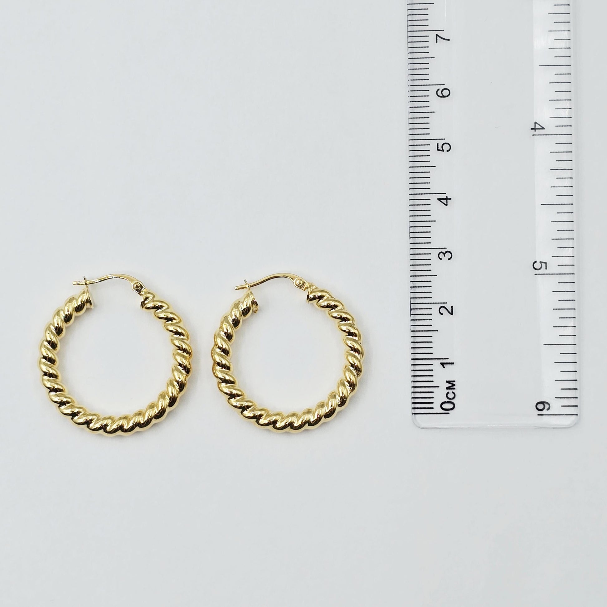 Elevate your everyday style with these stunning 10K gold twisted rope hoop earrings. Crafted in genuine 10K solid gold, these hoops feature a bold rope design that adds texture and shine to any look. Their lightweight and durable build ensures comfort for daily wear, while the timeless 28mm size makes them the perfect accessory for both casual and formal occasions. A must-have staple for any jewelry collection.