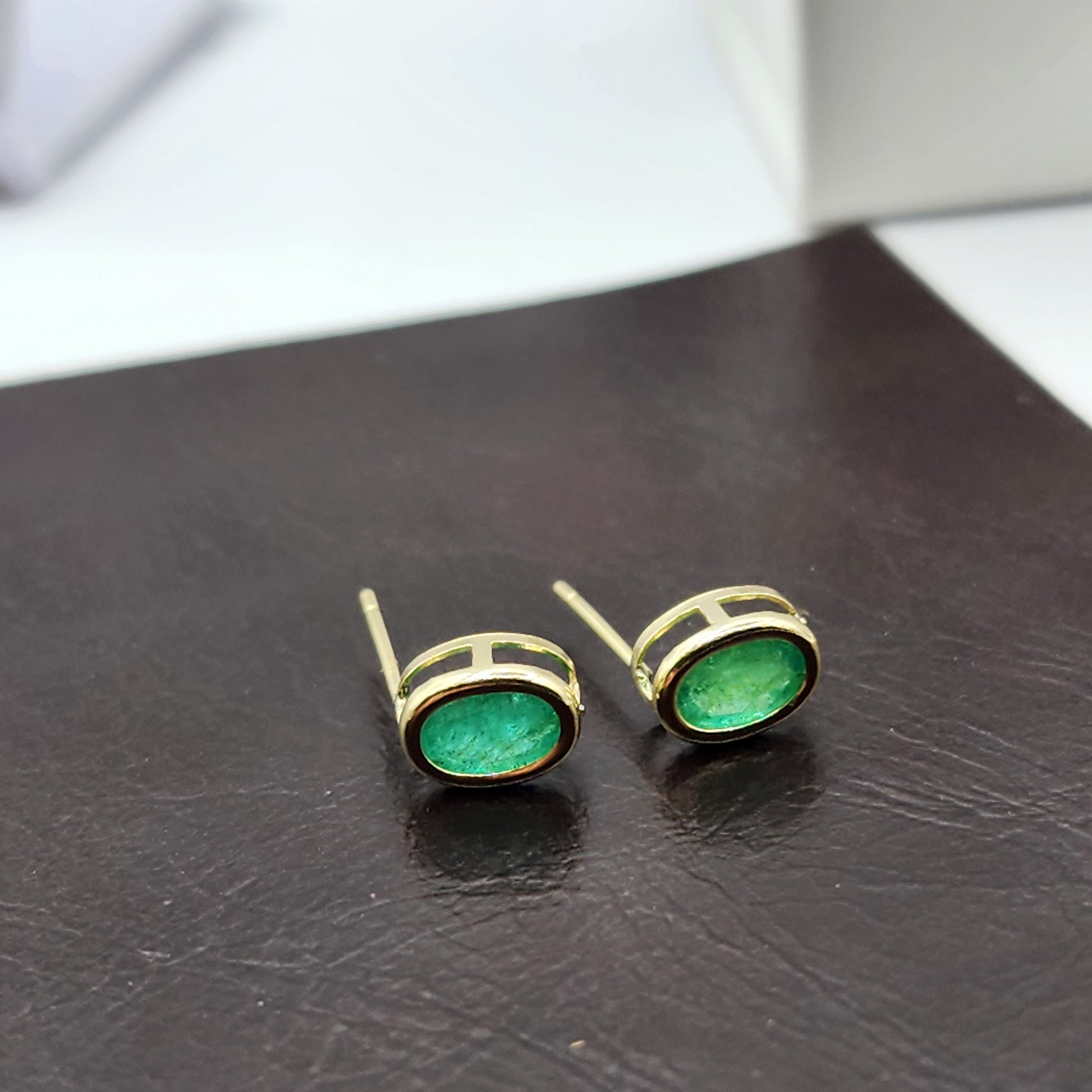 14K Yellow Gold Stud Earrings Natural Emerald (1.7ct) Size: 8x6mm Handcrafted with care in Canada