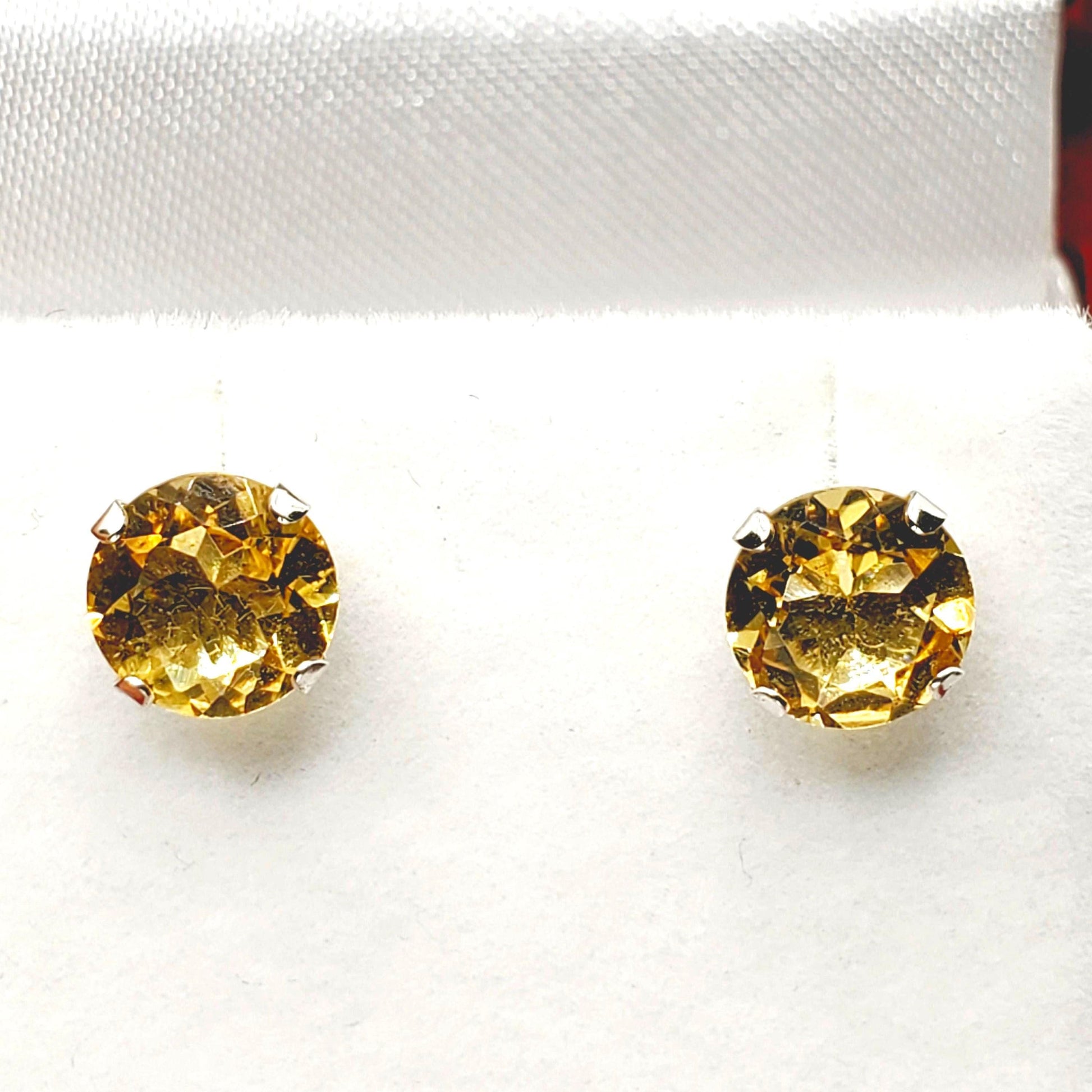 14K White Gold Genuine Citrine Stud Earrings Size of stone: 7x7mm Handcrafted with care in Canada