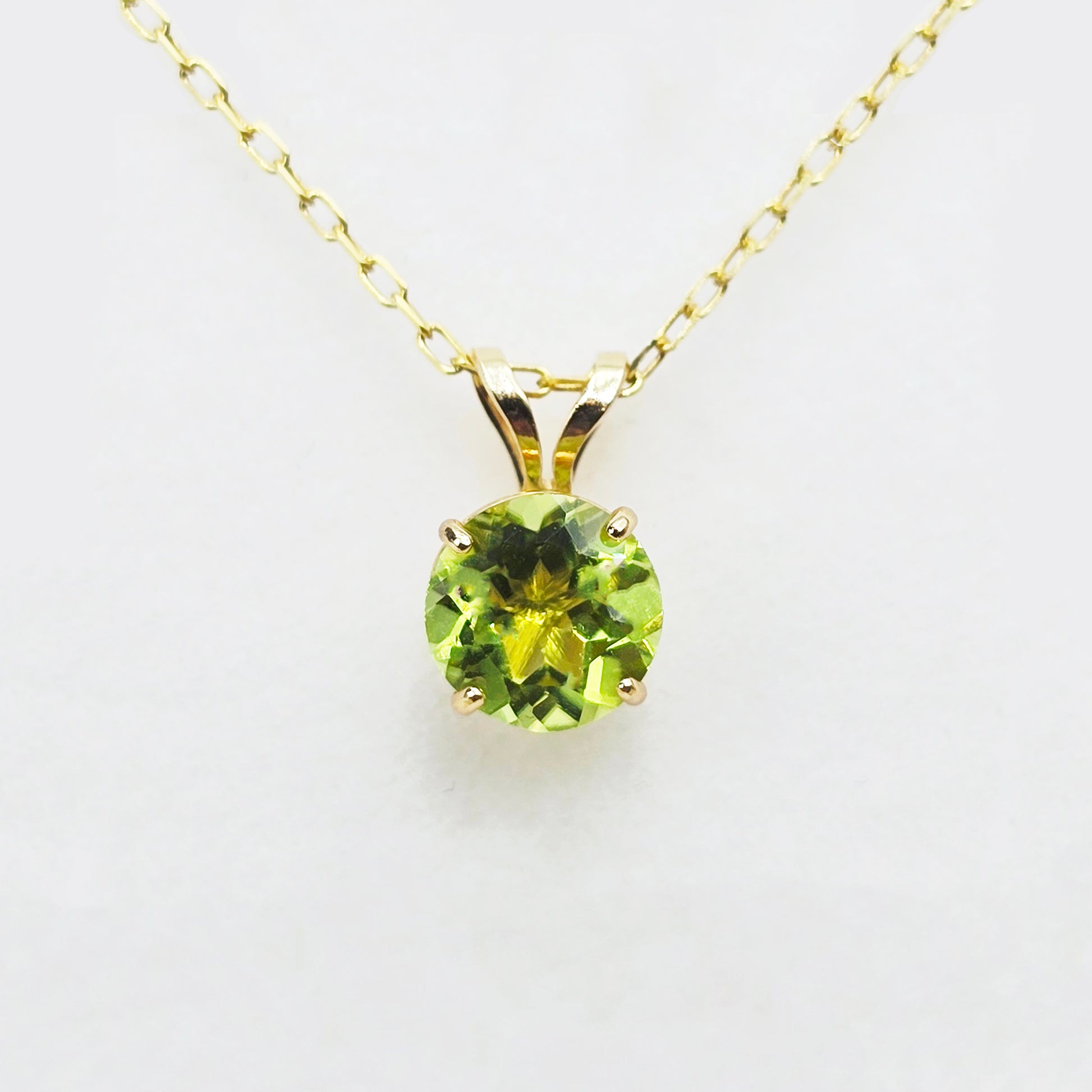 Brighten your look with this vibrant 14K Yellow Gold Peridot Pendant. Featuring a genuine 6mm round-cut peridot, this pendant shimmers with a lively green hue that symbolizes renewal and positivity.