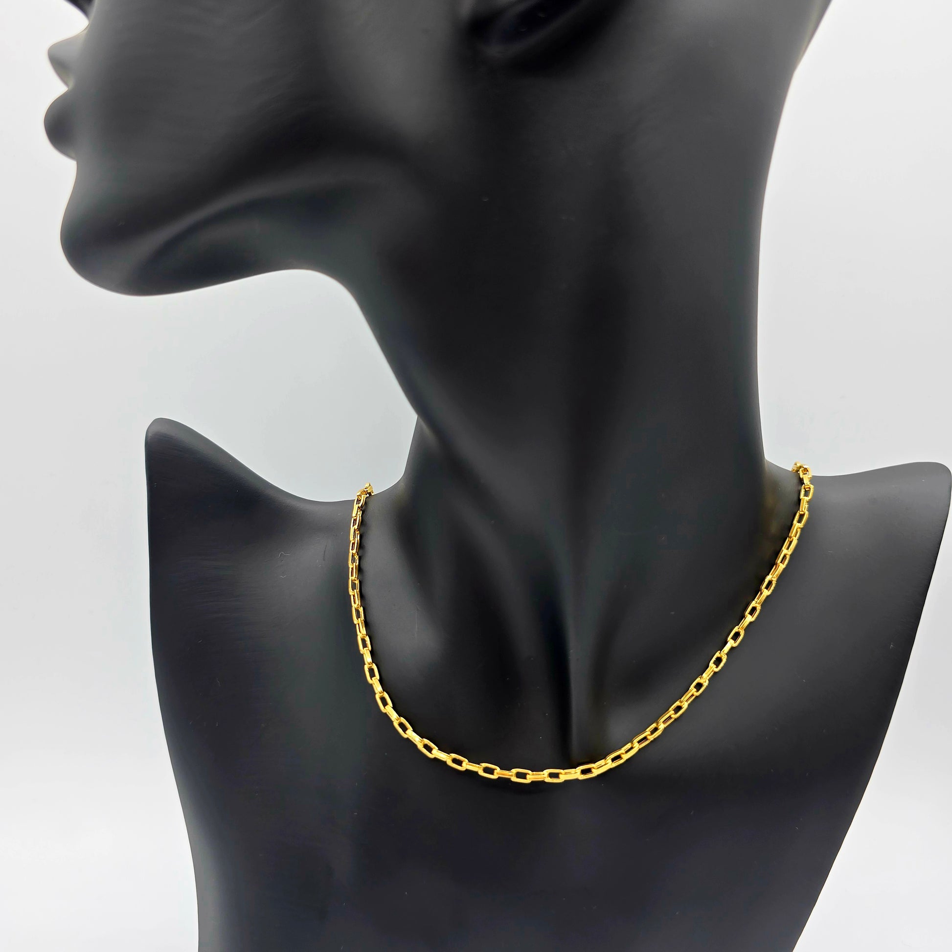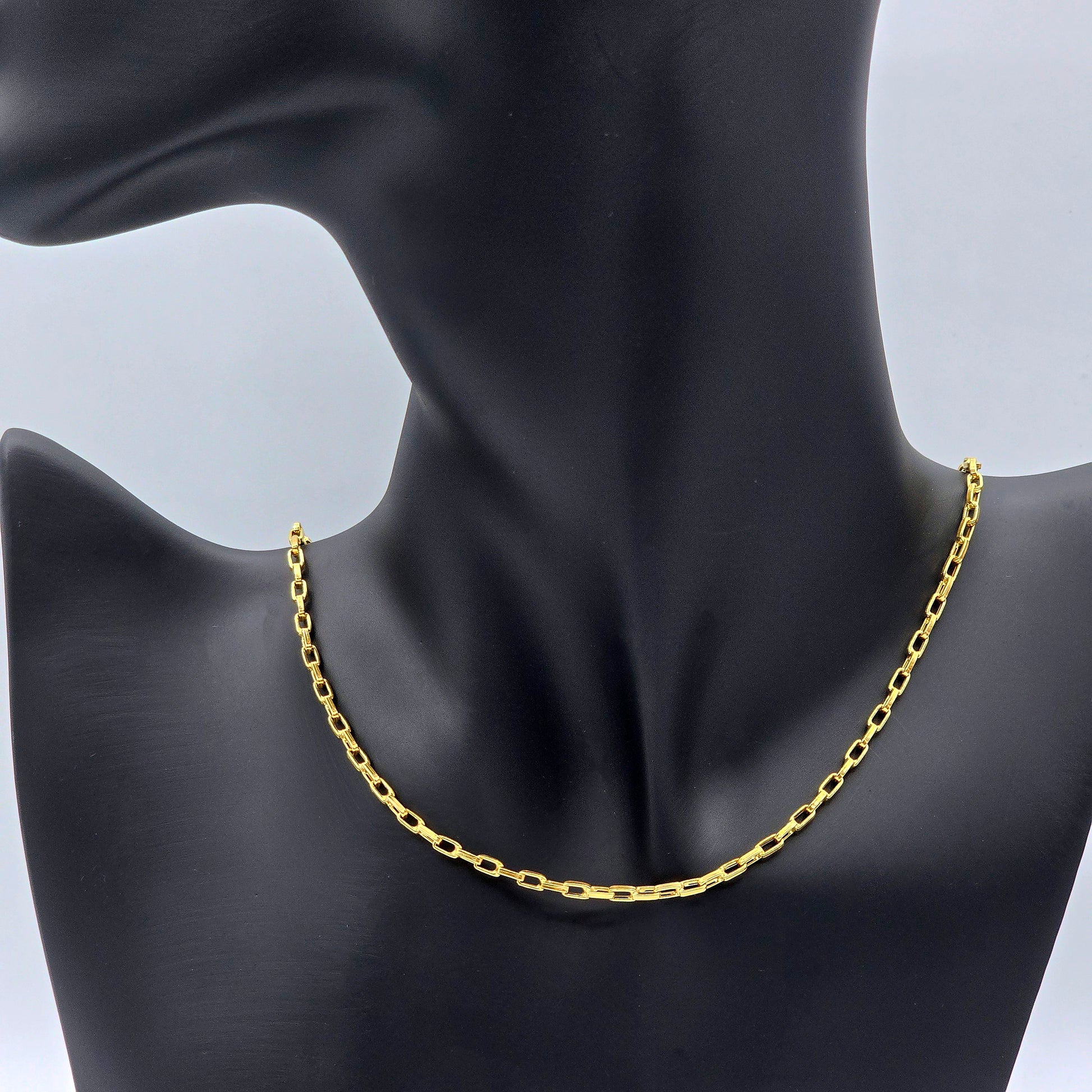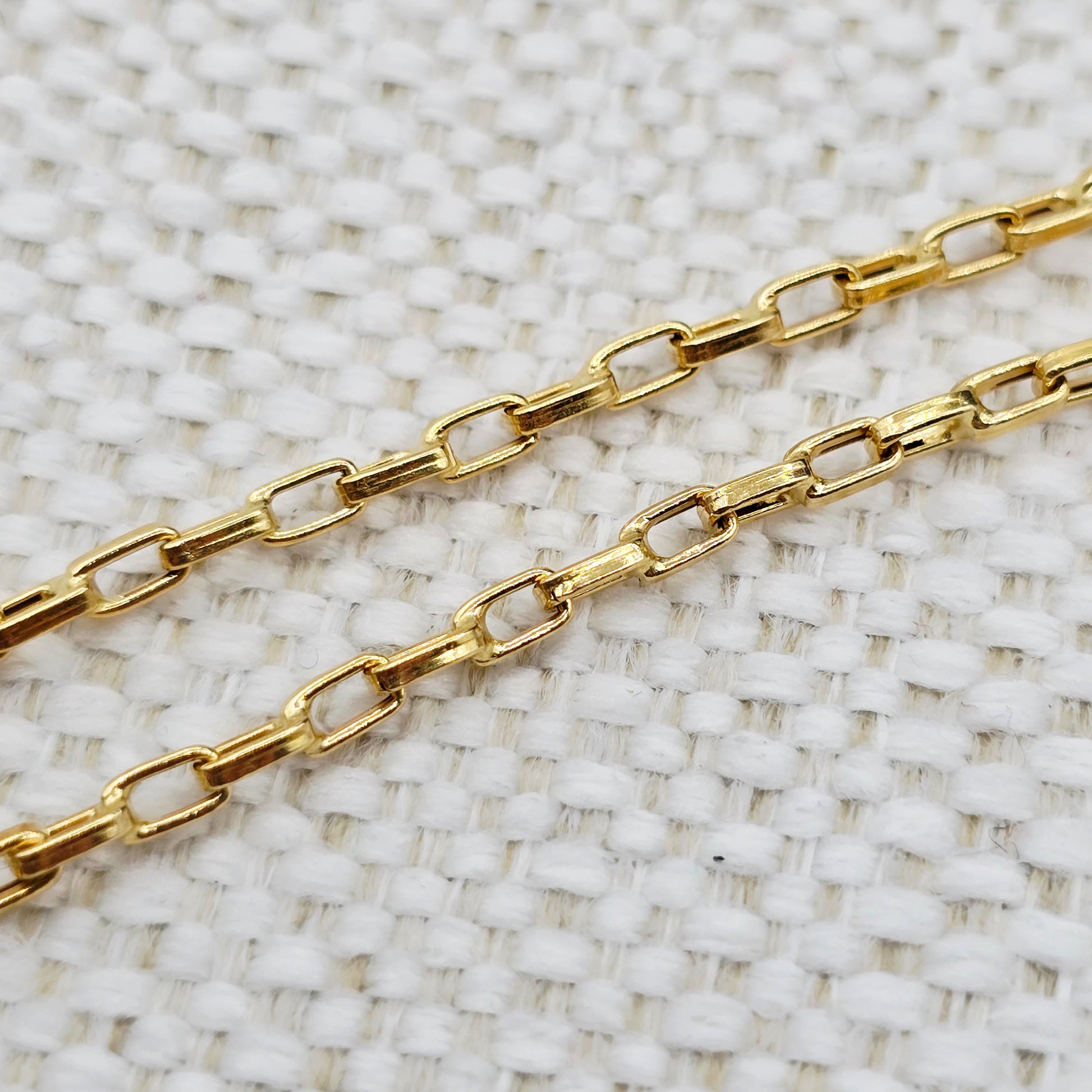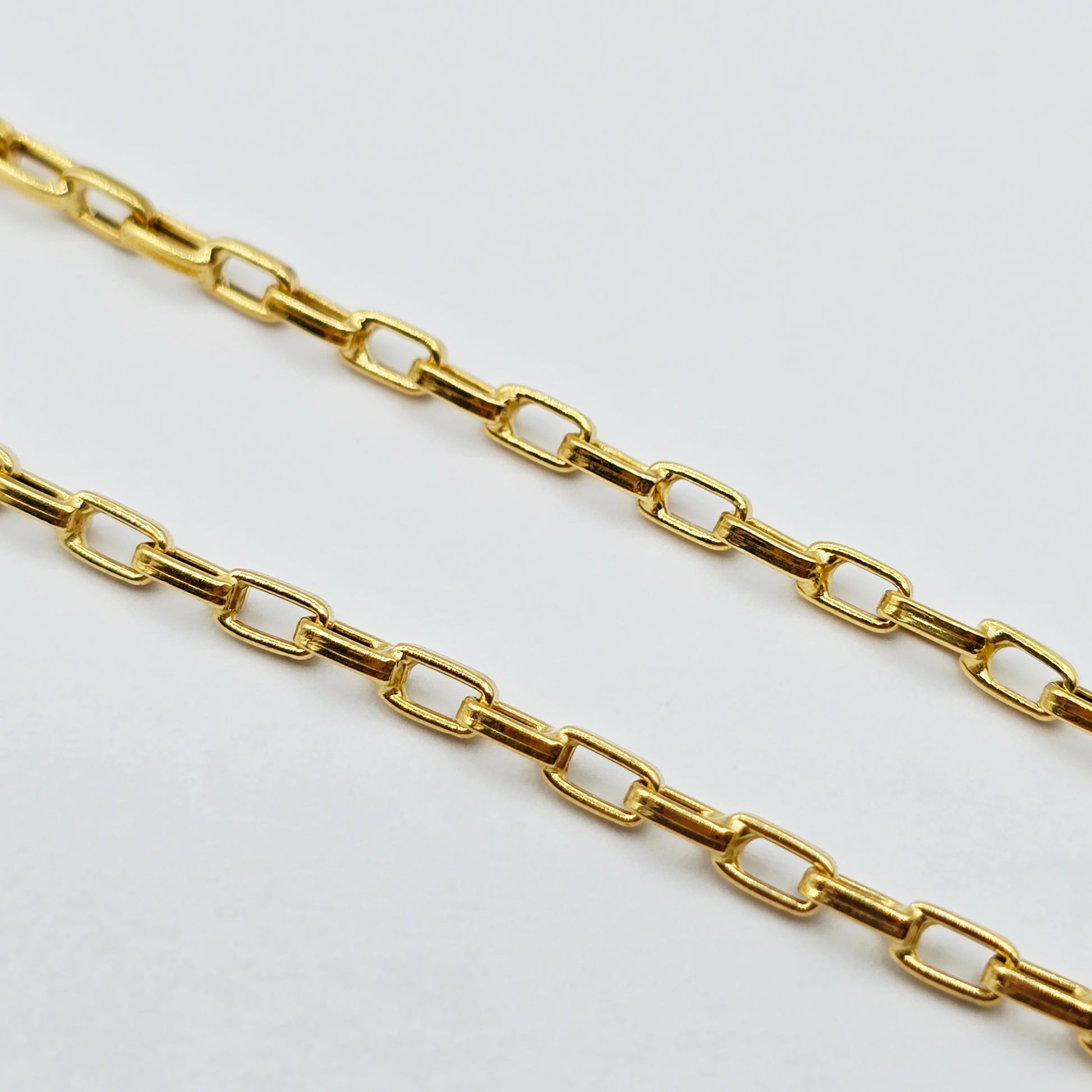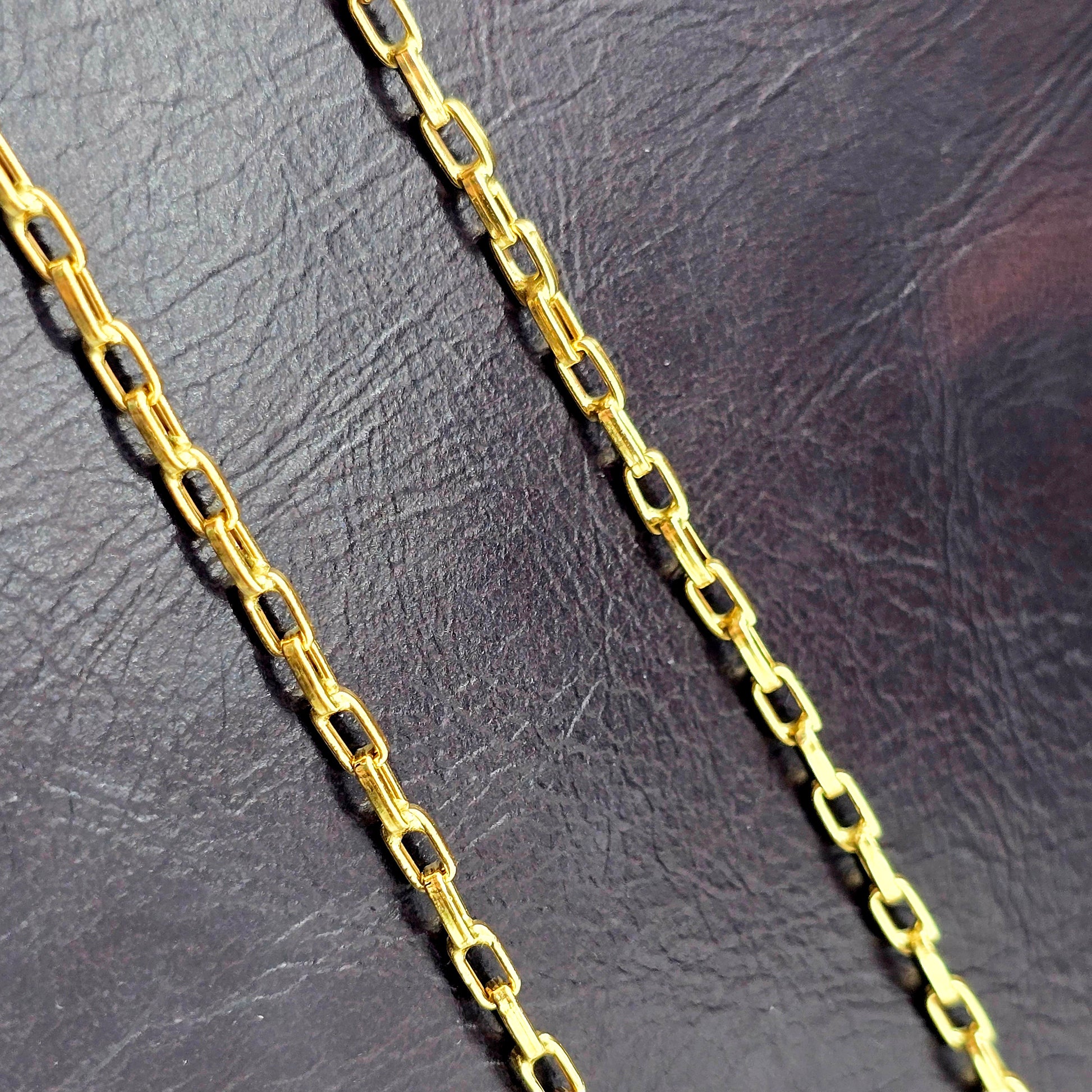 Elevate your style with this elegant 18K Yellow Gold Chain, measuring 17 inches in length and 2.5mm in width. Crafted in solid 18K gold, this chain features sleek rectangular links with a refined shine, offering a timeless and versatile look.