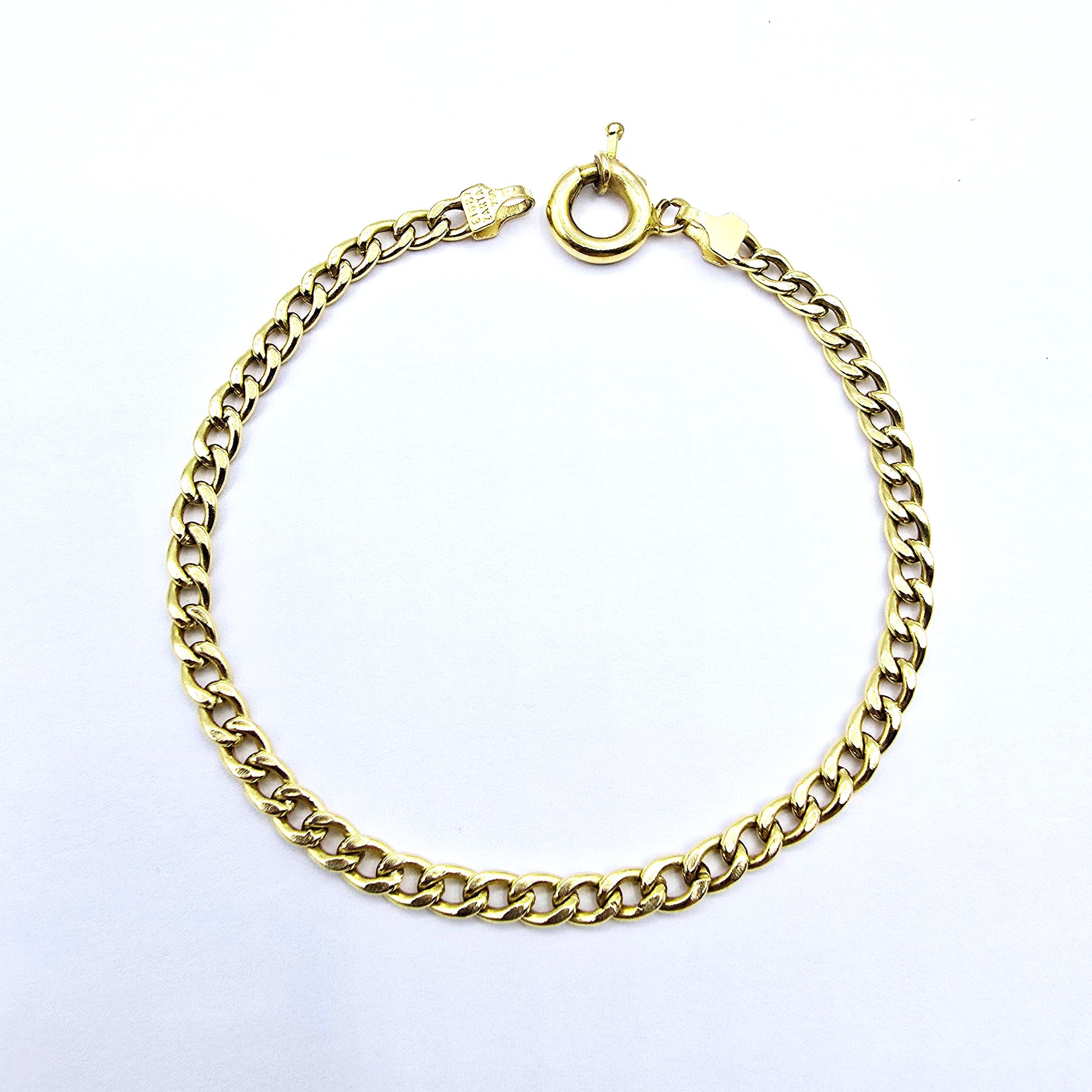 Elegant and timeless, this 18K Yellow Gold Bracelet features a classic 4mm curb chain design and measures 7.5 inches in length. Perfect for everyday wear or layering with other pieces.