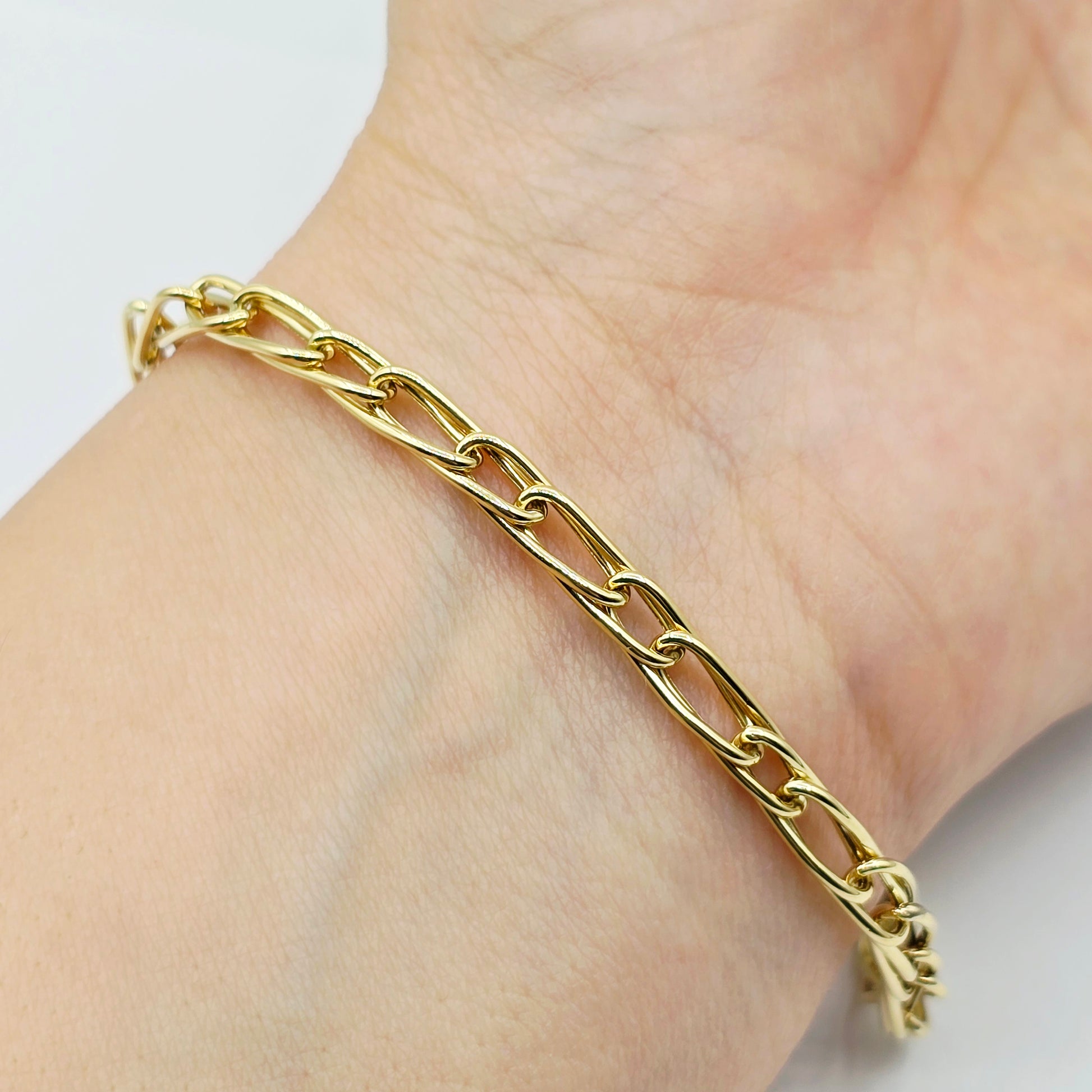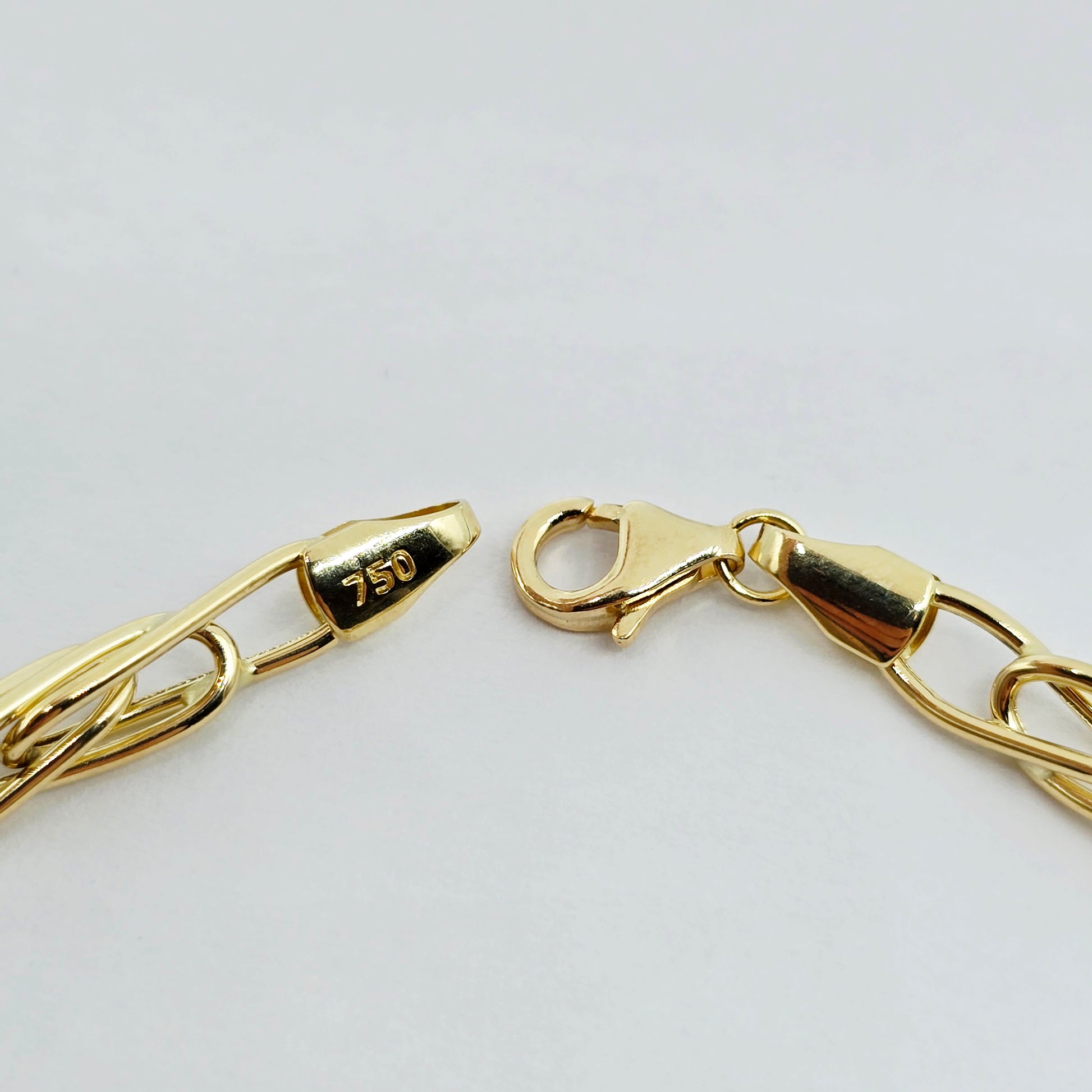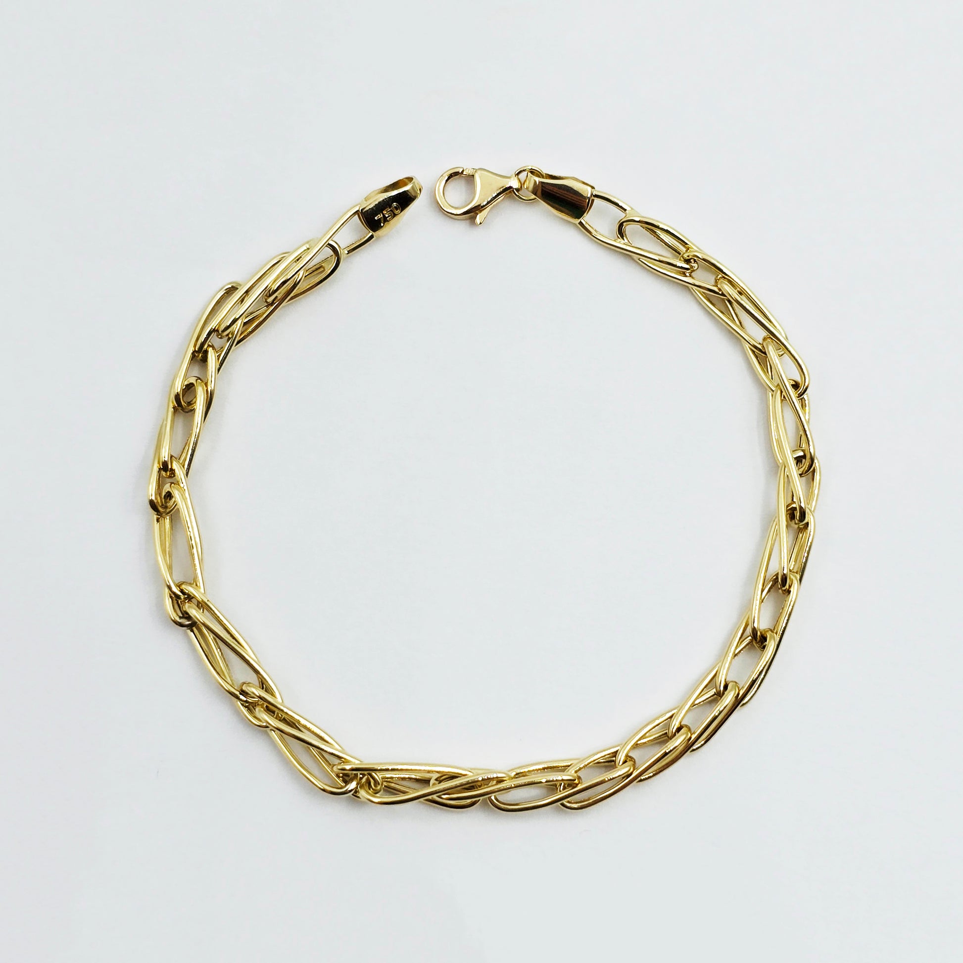 This stylish 18K Solid Gold Bracelet features a sleek elongated link design with a hollow structure, giving it a lightweight feel while maintaining the elegance of genuine solid gold. Crafted in 18K yellow gold, this bracelet shines with timeless beauty and is perfect for everyday wear or layering with other favorites. Its modern link style and secure clasp closure make it both fashionable and practical. A versatile accessory and a thoughtful fine jewelry gift.