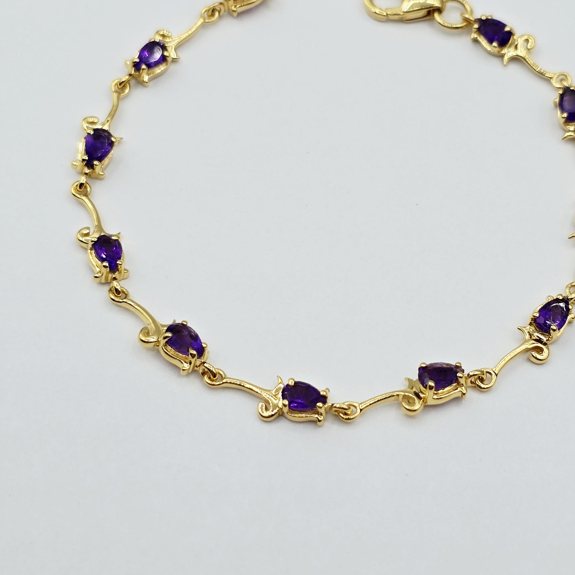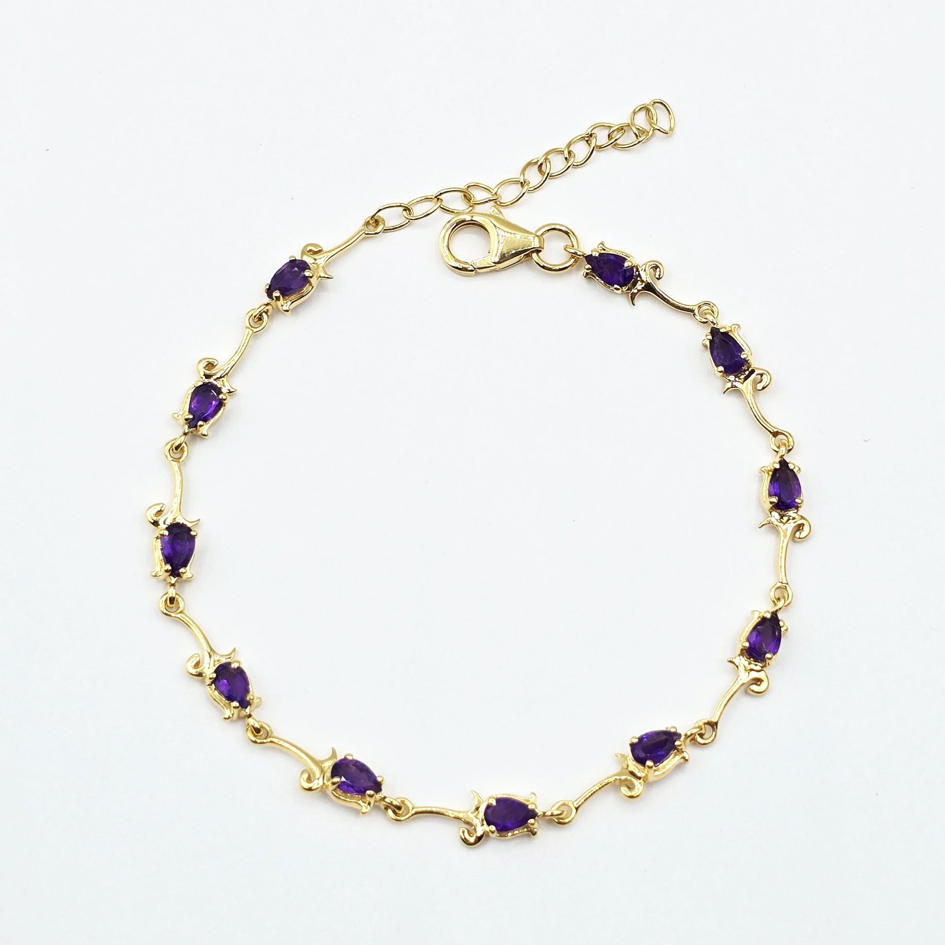 Elevate your style with this elegant bracelet crafted in sterling silver and luxuriously plated with gold. Adorned with genuine oval-cut amethyst gemstones totaling 2.2 carats, this piece radiates a rich purple hue that symbolizes peace and clarity.