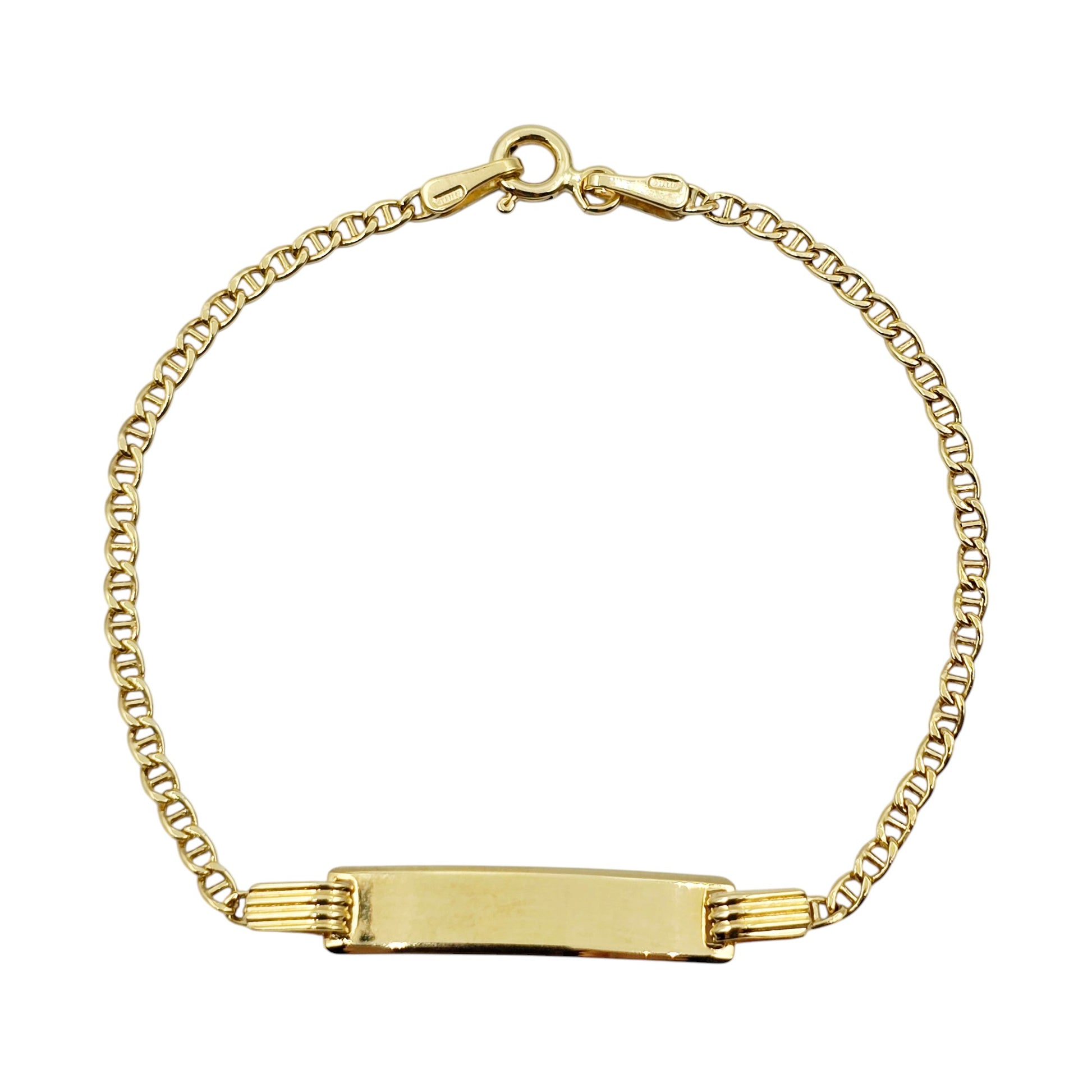 Adorable and timeless, this Baby ID Bracelet is crafted in solid gold with a smooth rectangular plate, perfect for personal engraving. Designed to sit comfortably on a baby’s wrist, it adds a touch of elegance while remaining safe and lightweight for everyday wear. A meaningful keepsake that can be cherished for years, this bracelet makes a perfect gift for newborns, birthdays, baptisms, or special occasions.
